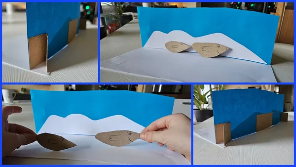 Seekord valmis 7a pojal jääkarude mäng. Suurimaks väljakutseks ruumilise mängukoha loomisel oli paberite püsti seadmine. Laps ei heitunud ega andnud alla, vaid leidis juba hetk pärast probleemi ilmnemist täiesti iseseisvalt lahenduse. Ainult vaata ja imesta lapse leidlikkust, kannatlikkust ning tahet kõike ellu viia.